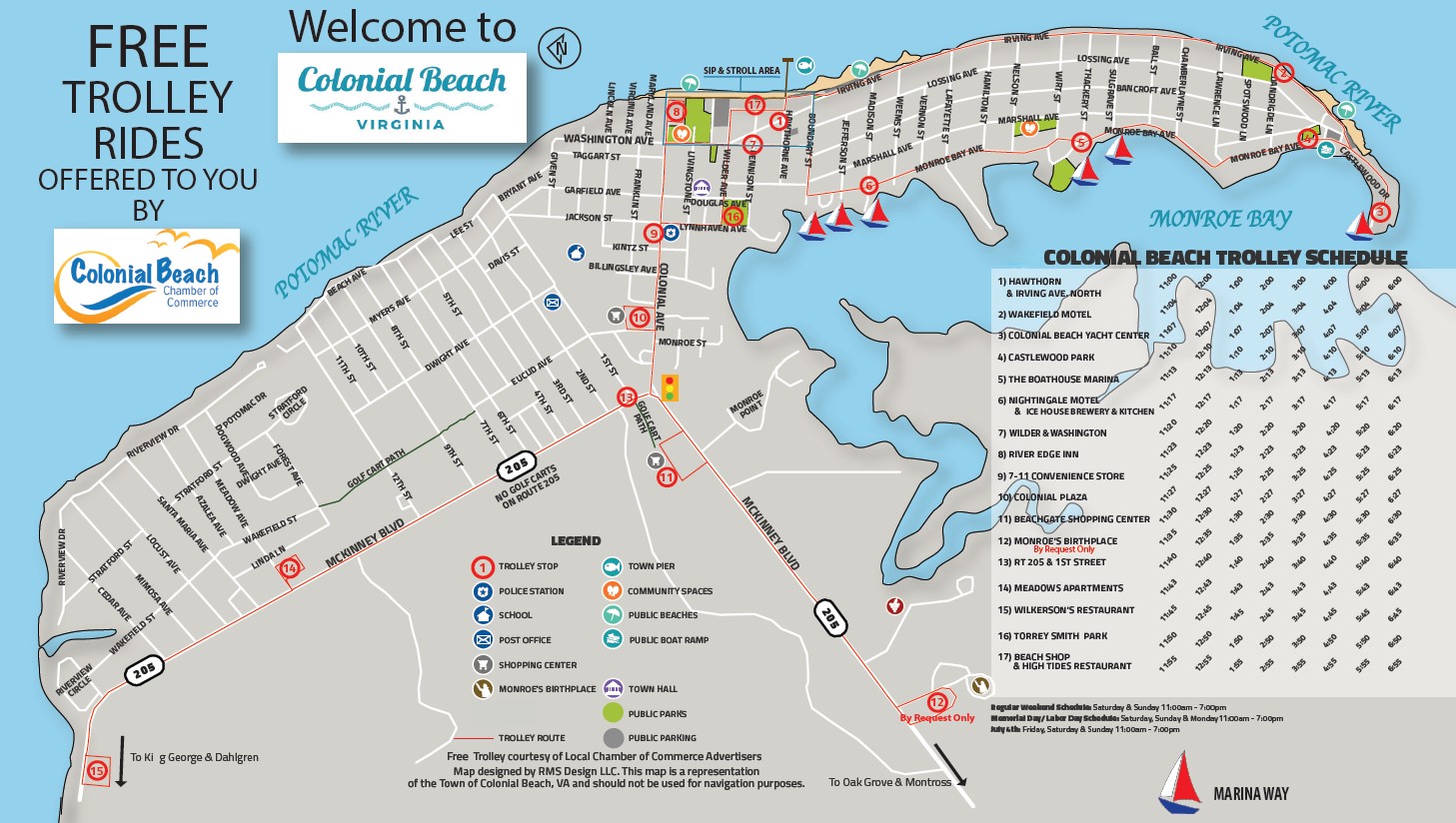 On behalf of the Colonial Beach Chamber of Commerce, we welcome you to our unique and relaxing waterfront town. This Visitors Guide has been created with you in mind and we hope it makes your stay with us a wonderful experience. We offer you many choices. Simply spend the day relaxing and playing on the second longest beach in Virginia or plan day trips to nearby historical sites, wineries, and state parks. If a day in town is your choice, park your car and rent a golf cart. Visit our many retail shops, art galleries and antique stores. Take a break and enjoy something to eat at sandwich shops, delis, gourmet markets, and restaurants. Spend the day fishing, crabbing, boating, and kayaking. Planning to spend more time here at the beach? Accommodations include bed and breakfasts, campgrounds, cottages, motels, and marinas. Even as summer passes, we continue events well into the fall and
